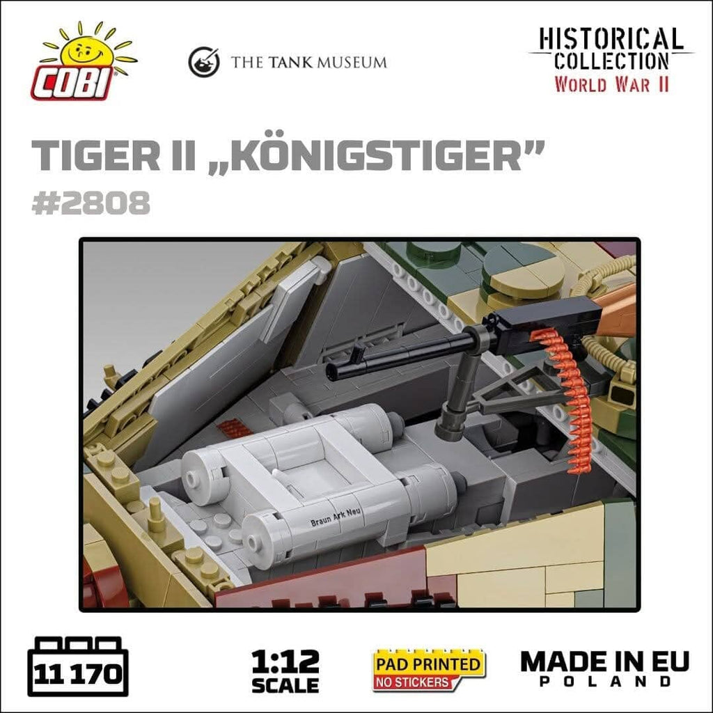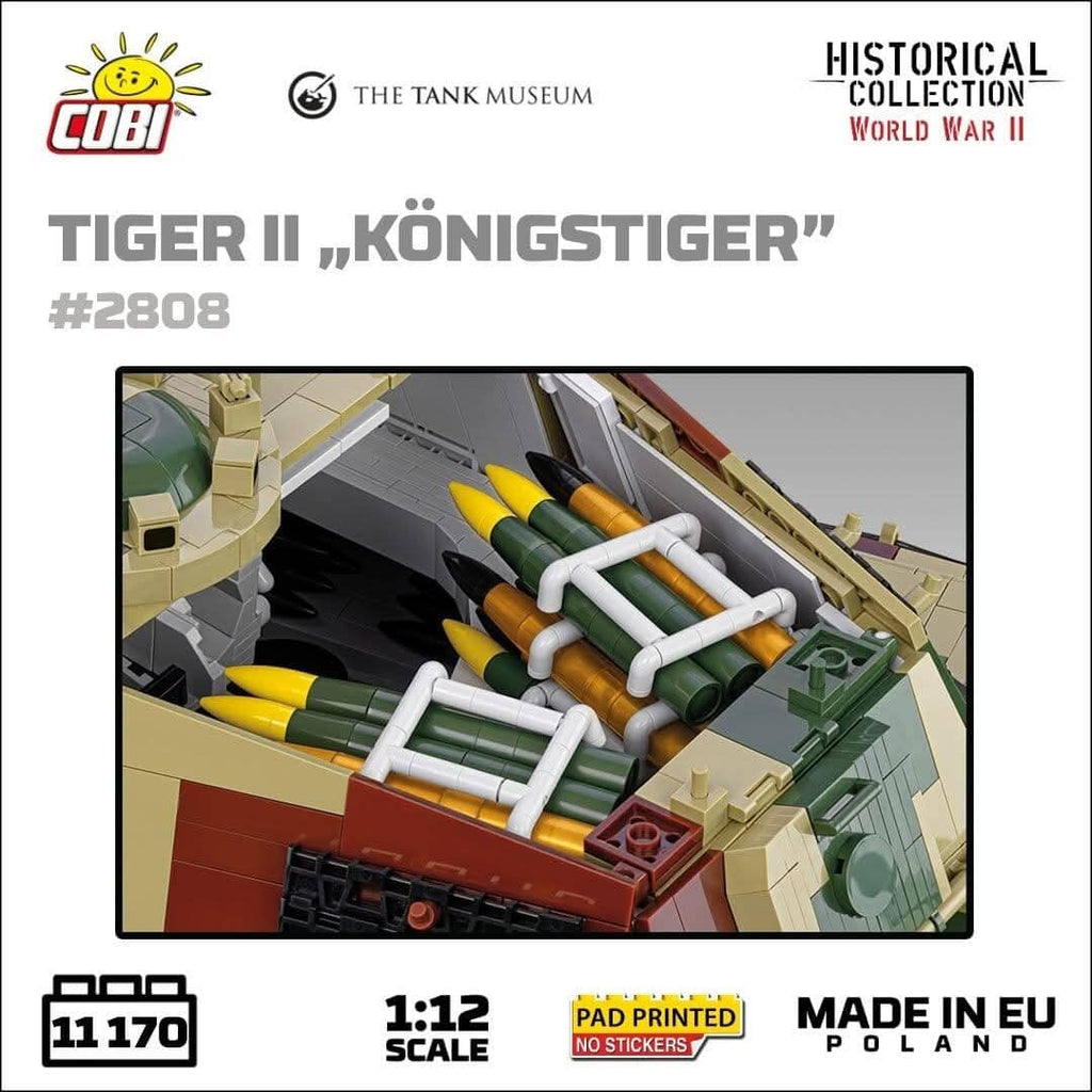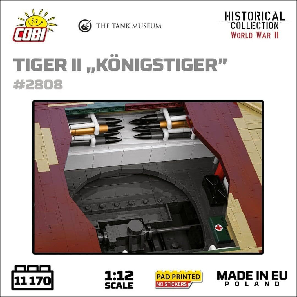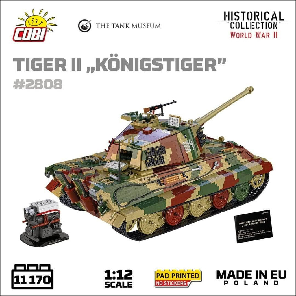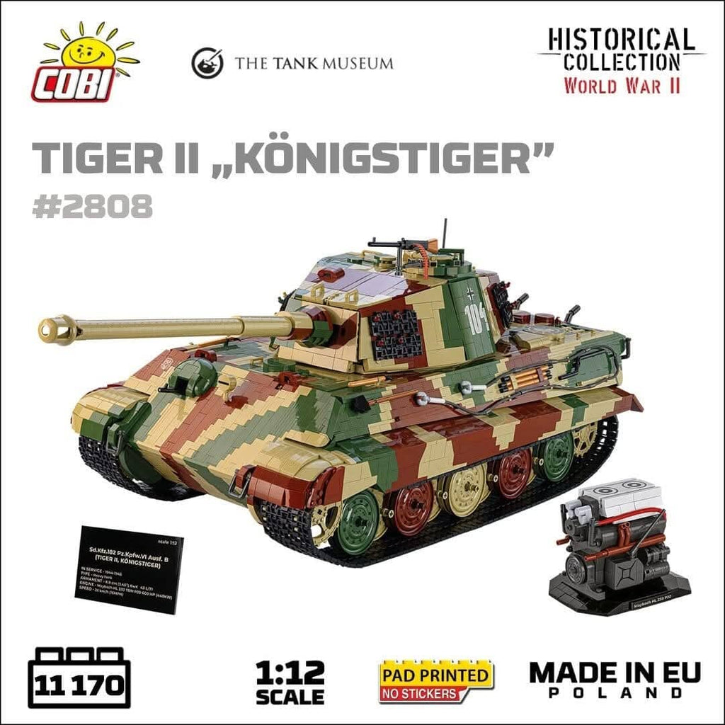 The Panzerkampfwagen VI B Tiger II, commonly known as the Königstiger or "King Tiger," was a formidable German heavy tank used during the latter stages of the Second World War. Introduced in 1944, it combined thick armour and a powerful 88mm gun, making it a feared adversary on the battlefield. The tank's frontal armour was nearly impervious to most Allied weapons, and its long-range firepower was exceptional. However, its immense weight made it mechanically unreliable and difficult to manoeuvre. Only around 490 units were produced due to manufacturing complexities and resource shortages. Despite its tactical strength, the Tiger II was often hindered by logistical challenges, and many were lost to mechanical failure rather than enemy fire. It remains an icon of German engineering.