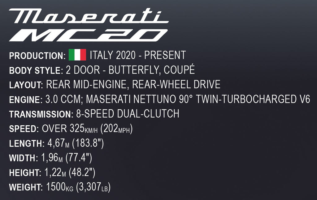 The Maserati MC20, unveiled in September 2020, marks Maserati’s bold return to the supercar segment. Its name stands for Maserati Corse 2020, highlighting both its racing heritage and new era of innovation. Developed in Modena, Italy, the MC20 was the brand’s first all-new mid-engined supercar in decades, following the iconic MC12 of 2004. Central to its identity is the Nettuno engine, a 3.0-litre twin-turbo V6 with patented Formula 1–inspired pre-chamber combustion technology, delivering over 620 hp. The lightweight carbon-fibre monocoque ensures agility, while its design blends Italian elegance with aerodynamic efficiency. The MC20 also laid the foundation for an all-electric “MC20 Folgore” variant, reinforcing Maserati’s ambition to combine motorsport DNA with modern performance and sustainability.